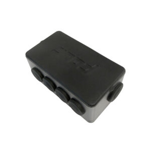 Huset är tillverkat i vädertålig plast och har ett flexibelt gummilock på ovansidan som skyddar anslutningarna. Kabelingångarna är försedda med O-ringstätningar i gummi som kan anpassas efter olika kabeldimensioner. Invändigt sitter kabelhylsor som låter dig fästa kablarna ordentligt på plats. Blocket kan enkelt monteras genom att skruva fast det via hålen i basen.