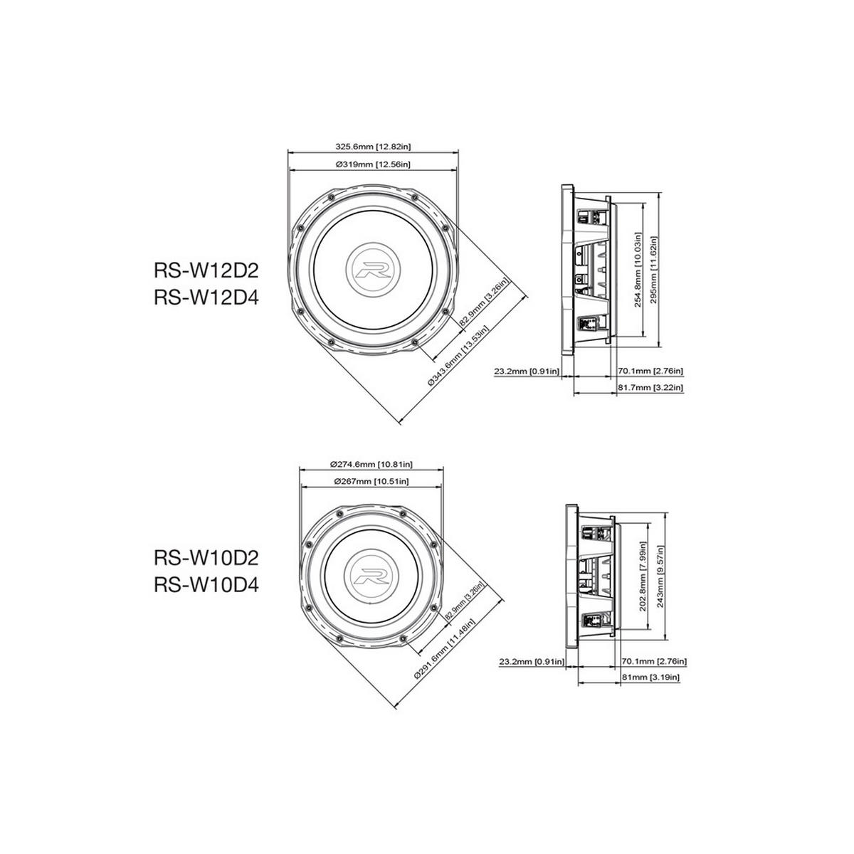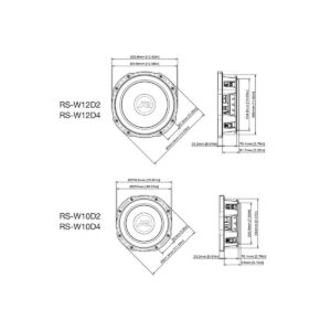 RS-W10D4 levererar bas på en nivå som inte brukar vara möjlig från en grund konstruktion. Den spelar djupt och kontrollerat med snabb attack och mycket låg distorsion, även vid hög effekt. Passar perfekt i trånga utrymmen som bakom säten, under golvpaneler eller i specialbyggda baslådor – utan att kompromissa med ljudtryck eller spelglädje.