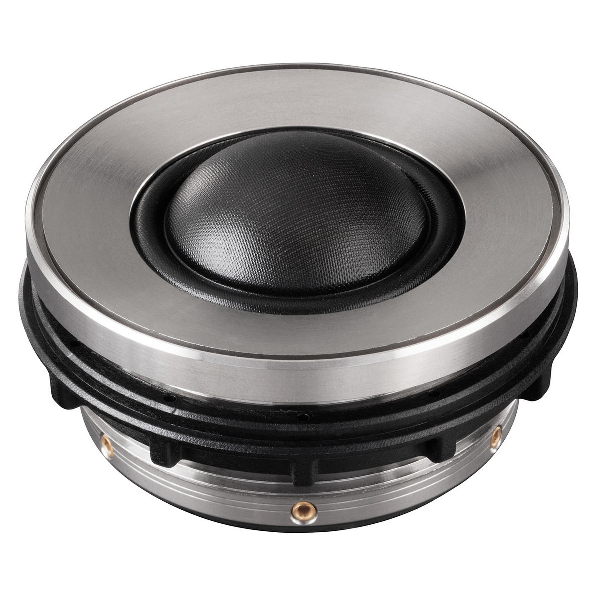 Huset är fräst ur massivt rostfritt stål – inte bara för utseendets skull, utan för att säkerställa optimal värmeavledning från talspolen. Den inåtvinklade formen runt domen styr ljudvågorna och optimerar spridningen för en jämn och överlägsen frekvensrespons.
