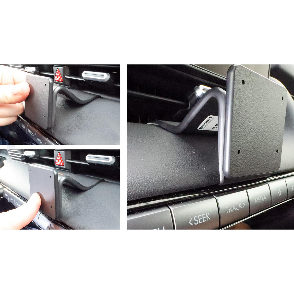 Samtliga hållare monteras på en ProClip, som är modellanpassad för din bil och fästs utan att skada interiören. Kombinationen av Brodit mobilhållare och ProClip ger en stabil, snygg och praktisk lösning.