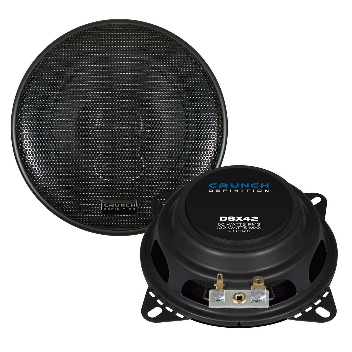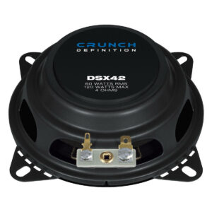 Crunch DSX42 är kompakta 4-tums koaxialer byggda för trånga installationer. Den ultra-grunda konstruktionen med intern magnet och stålchassi i platt design gör att de passar där många andra 4″ inte får plats – perfekt som ersättare i dörrar och instrumentpaneler.