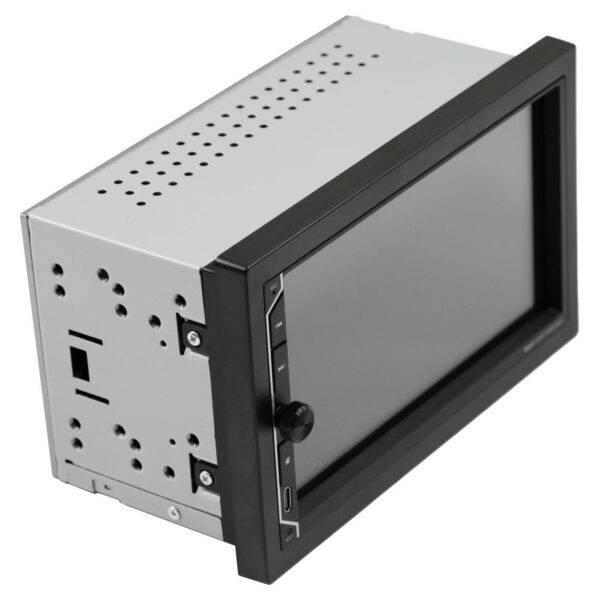 Den responsiva 7-tums pekskärmen erbjuder en tydlig överblick och enkel navigering mellan menyer och appar. På fronten finns även en bekväm volymratt och funktionstangenter som förenklar användningen under körning. RGB-belysningen i knappsatsen kan dessutom anpassas med animeringseffekter för en personlig touch.