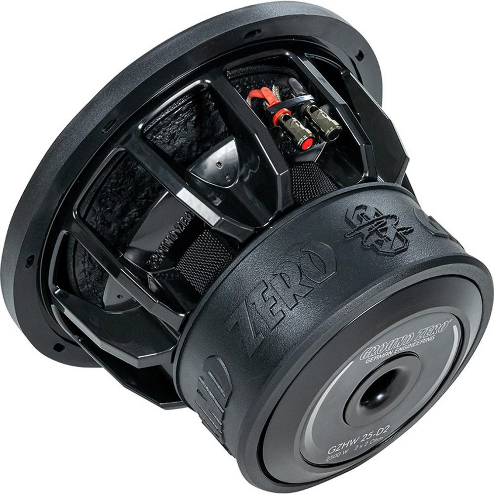 GZHW 25-D2 är en 25 cm (10″) subwoofer byggd för höga ljudtryck med kapacitet på hela 1200W RMS. Den levererar djup, kraftfull bas med kontroll även när du kör riktigt hårt. D2-varianten har dubbla 2-ohms spolar och passar de flesta slutsteg på marknaden.