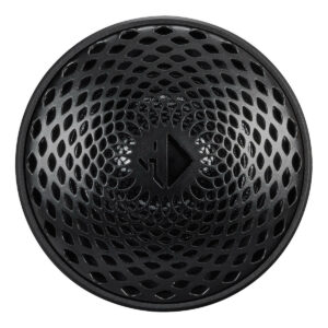 Midbasen på 100 mm använder en kon i papperskomposit med basaltfiberförstärkning. Den kombinationen ger låg vikt, hög styvhet och effektiv intern dämpning – vilket resulterar i ett mellanregister med mycket kontroll, naturlig ton och minimal färgning. Diskanten är en 25 mm silkdome med neodym-magnet, monterad i ett elegant aluminiumhus som levererar öppna och luftiga toppar utan att bli skarp eller påträngande.