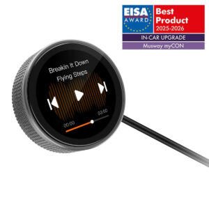 Musway myCON är en kompakt fjärrkontroll med rund pekskärm som ger dig direktåtkomst till din Musway DSP eller slutsteg med inbyggd DSP. Istället för att fumla med mobilappar eller gömda menyer justerar du volym, subwoofervolym, byter ingångskälla och väljer DSP-presets med en enkel vridning eller tryckning. Kontrollen monteras i en 38 mm håltagning i instrumentbrädan och ansluts till DSP:en via den medföljande 5-meters kabeln.