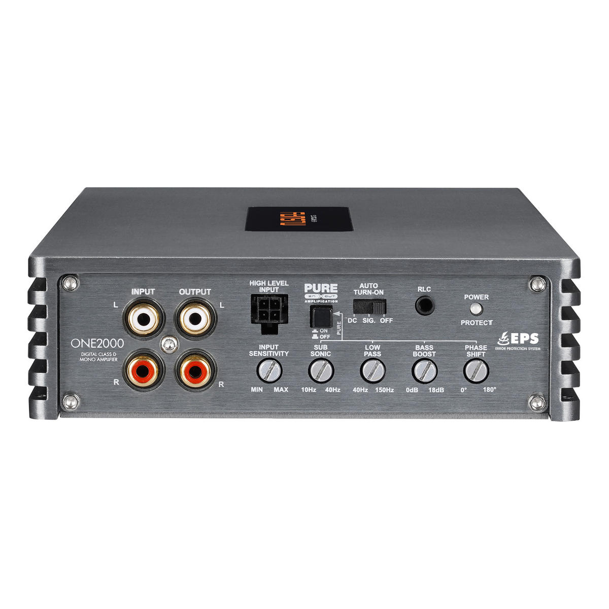 ONE2000 har högnivåingångar med EPS (Error Protection System) för enkel inkoppling mot originalstereo, samt Auto Turn-On (via DC eller signal). Steget är Start/Stop-redo och har line-utgång (RCA) för att kunna kedjekoppla ytterligare slutsteg. En kompakt basfjärr följer med för snabb nivåjustering från förarsätet.