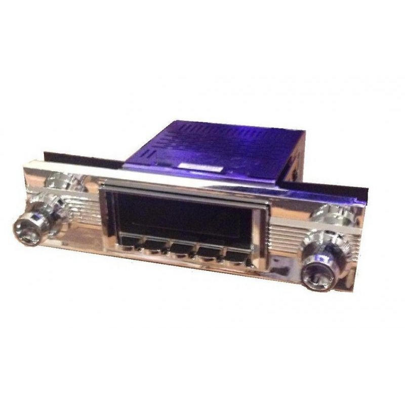 RetroSound erbjuder ett brett utbud av radioapparater, högtalare, antenner och tillbehör till klassiska bilar. Med hjälp av RetroSound är det inga problem att få bra ljud med en diskret installation i din gamla bil. Enheter som ser precis ut som originalet med krom och rattaxlar, det enda som avslöjar att det är en modern stereo är den digitala displayen. Kromade antenner och allt annat som hör till en gammal klassiker finns i sortimentet! San Diego: DAB+ Radio FM Radio Bluetooth 2 st USB ingångar Stöd för iPod/iPhone via USB kabel 2 st AUX ingångar 3 st lågnivå utgångar, fram, bak och subwoofer. Alla enheter levereras som byggsats, då de ska passa mängder av olika bilar är de i grunden dessa två enheter som man bygger på med rätt ram runt displayen, och rätt knoppar och rattar för att så långt som möjligt matcha original utseendet.