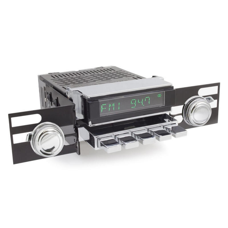 RetroSound erbjuder ett brett utbud av radioapparater, högtalare, antenner och tillbehör till klassiska bilar. Med hjälp av RetroSound är det inga problem att få bra ljud med en diskret installation i din gamla bil. Enheter som ser precis ut som originalet med krom och rattaxlar, det enda som avslöjar att det är en modern stereo är den digitala displayen. Kromade antenner och allt annat som hör till en gammal klassiker finns i sortimentet! San Diego: DAB+ Radio FM Radio Bluetooth 2 st USB ingångar Stöd för iPod/iPhone via USB kabel 2 st AUX ingångar 3 st lågnivå utgångar, fram, bak och subwoofer. Alla enheter levereras som byggsats, då de ska passa mängder av olika bilar är de i grunden dessa två enheter som man bygger på med rätt ram runt displayen, och rätt knoppar och rattar för att så långt som möjligt matcha original utseendet.
